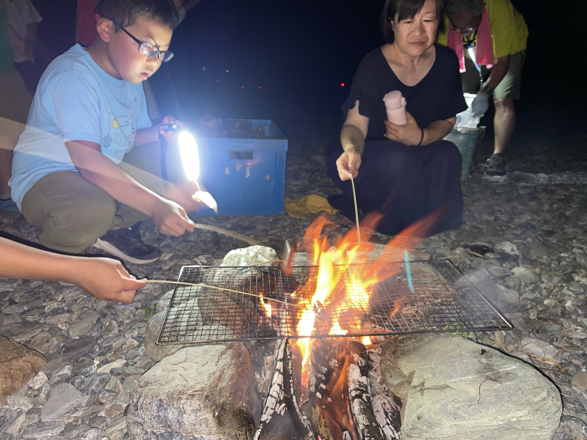 夜は、川探索に焚き火でほっこり。夜空の星座も綺麗に見えました。夜ご飯は川塾カレーに朝は焚き火ホットドッグと、ご飯もたくさんごちそうになりました!おやつの無限キュウリが密かな人気メニューです♪