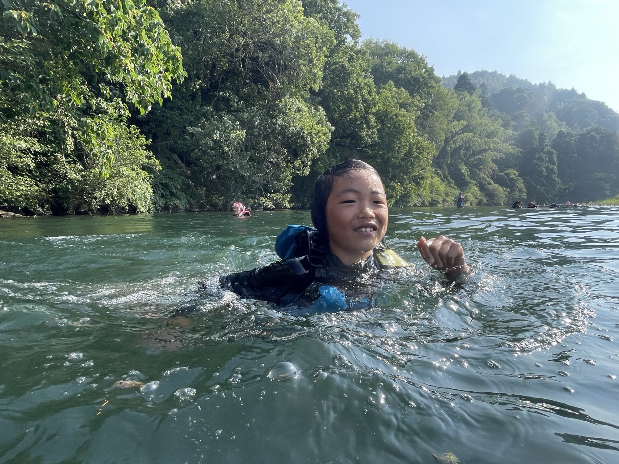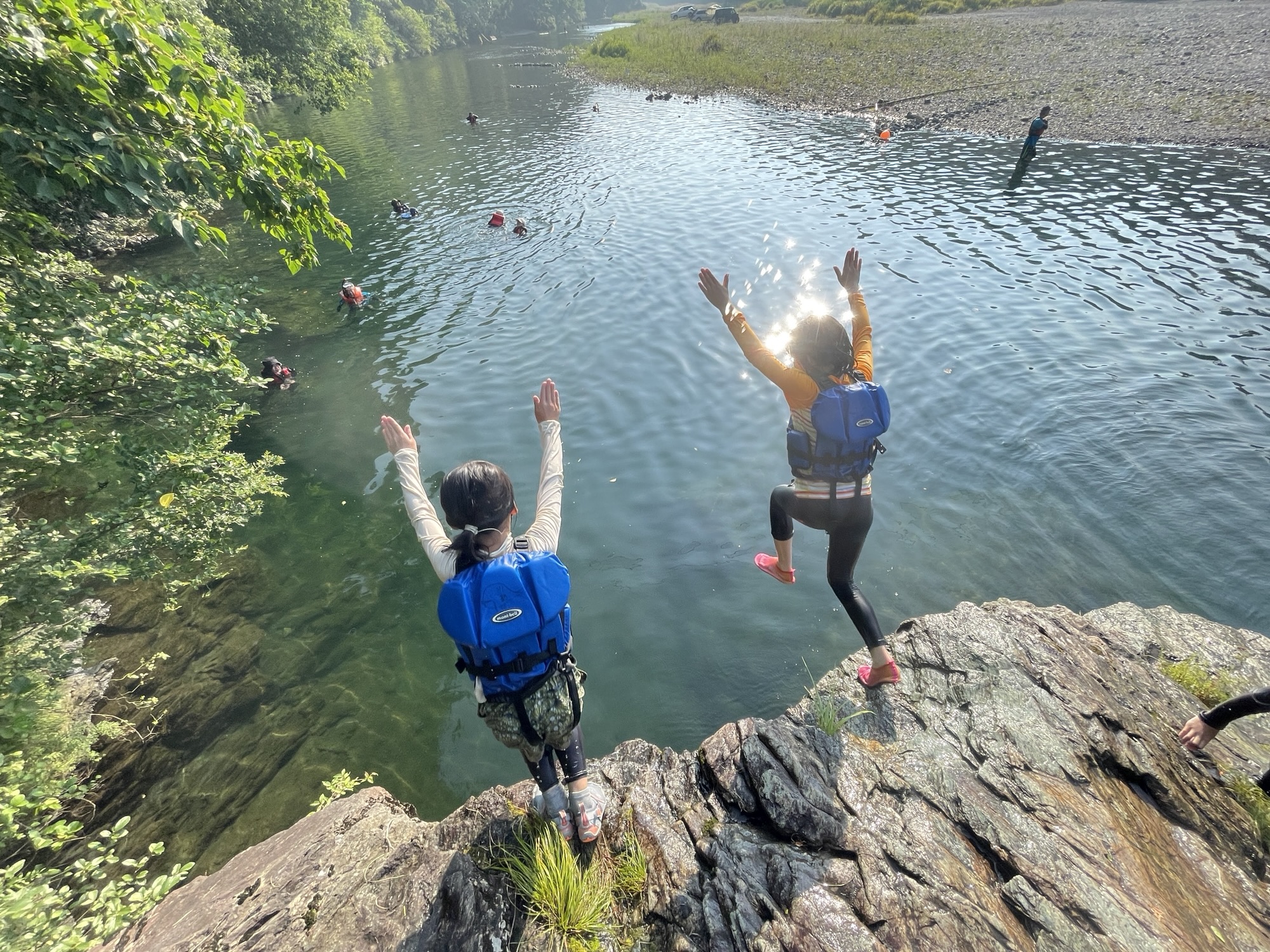 捕った魚をさばく真剣な顔、飛び込みで大ジャンプのあとの爽快な顔。さまざまに川を楽しむみんなの表情が印象的でした♪