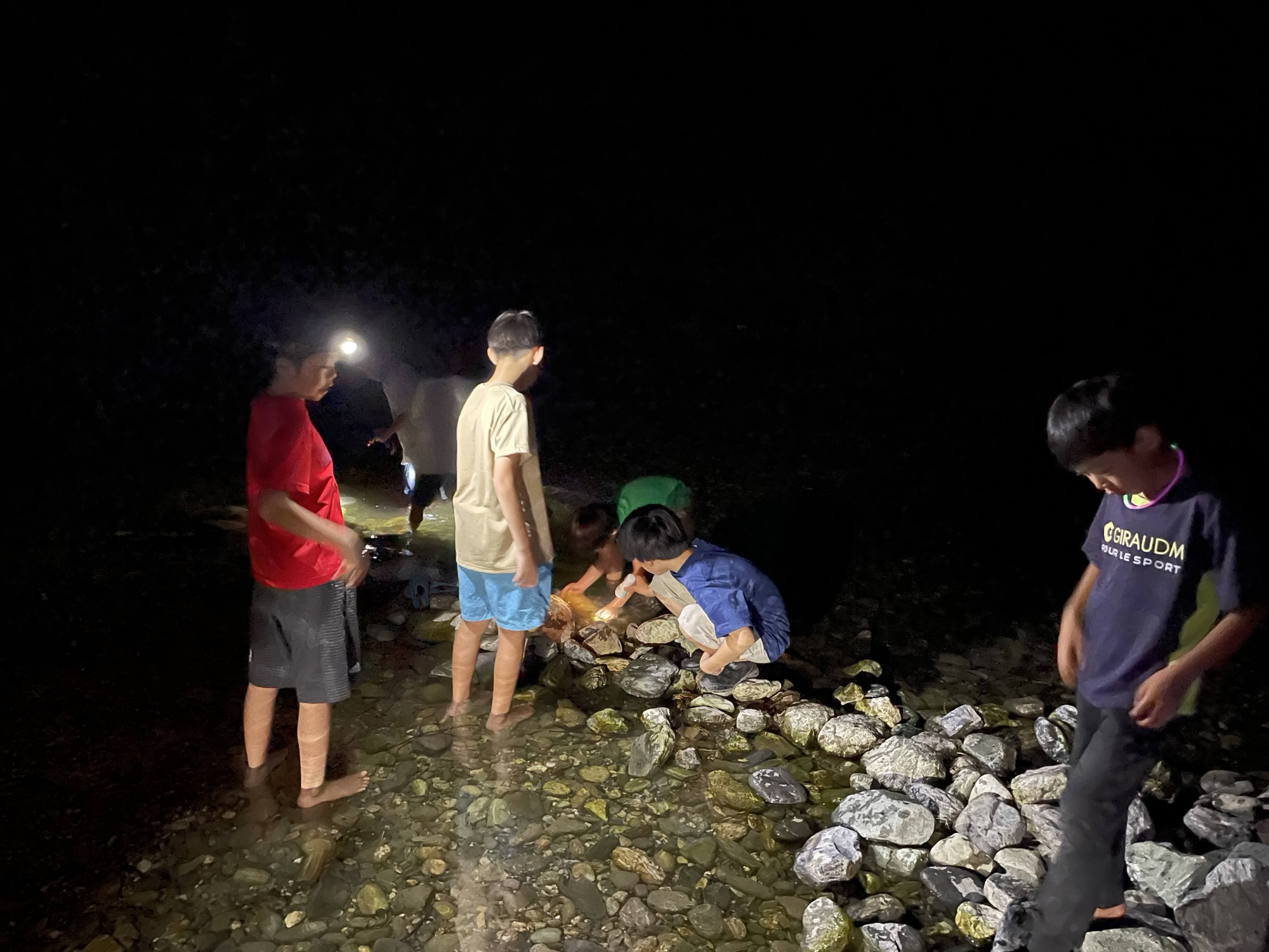 暑い暑い中でのキャンプになりましたが、みんな元気いっぱい!それぞれがやりたい遊びを満喫した2日間でした♪(まだ遊び足りなかったかも(笑)) 大きな手長エビに歓声があがったり、釣ったギギを一生懸命捌いて料理したり。飛び込みに川流れ、潜りにも挑戦!
