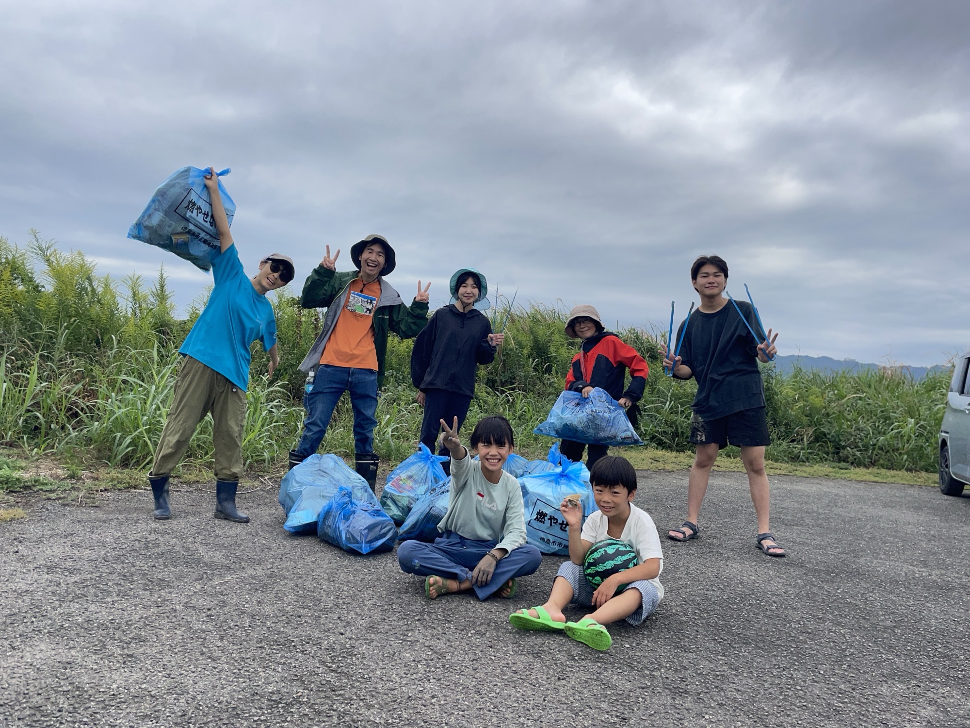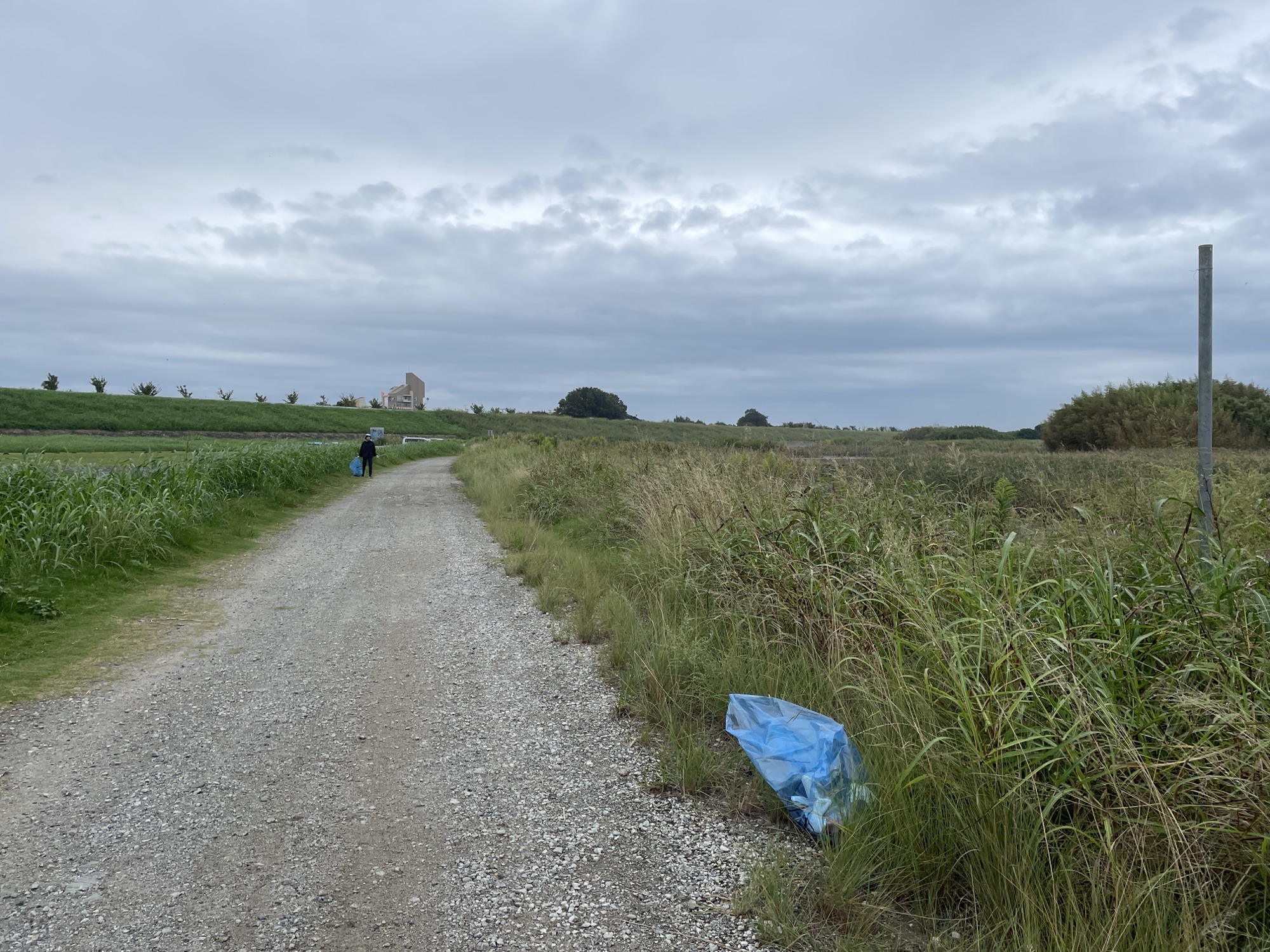 10月の水辺の教室では、はぜ釣りで吉野川の北岸の鉄橋下におじゃまするので、その下見も兼ねてそうじしました!