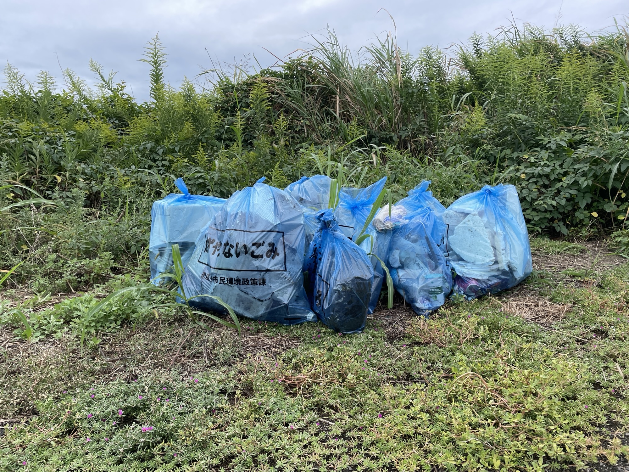 河川敷には、たくさんの不法投棄ごみや、川の流れや海の満ち引きで流れついてきたプラゴミがたくさん!