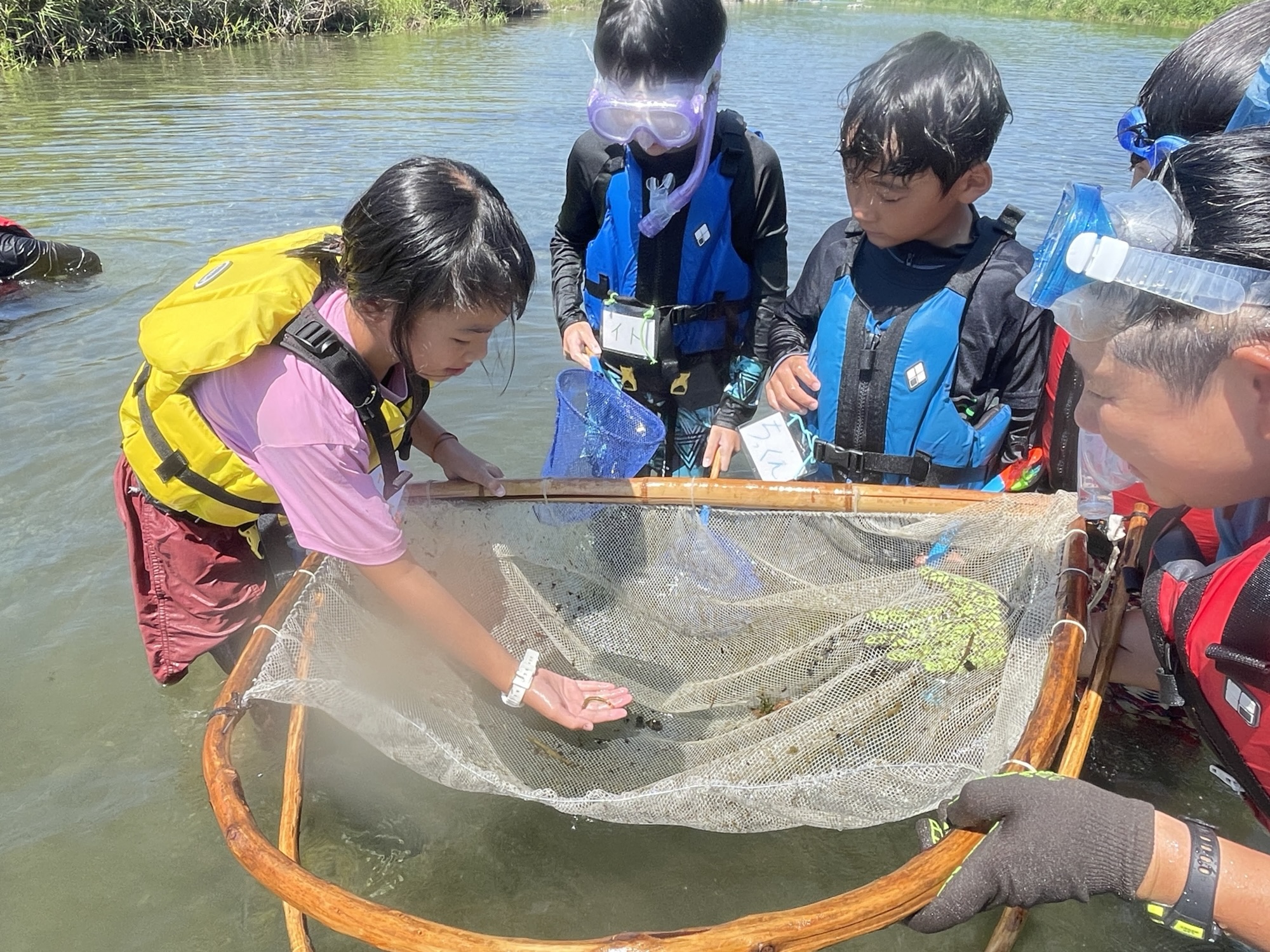 今月の水辺の教室は「川漁師になってみよう!」ということで、いろいろな方法で川の生き物をとってきました♪魚やエビ、カニなどをみんなで協力してたくさん捕りました!追い込み漁や見釣りなどで大物を捕れるように、それぞれが工夫して全力でがんばっていました!!