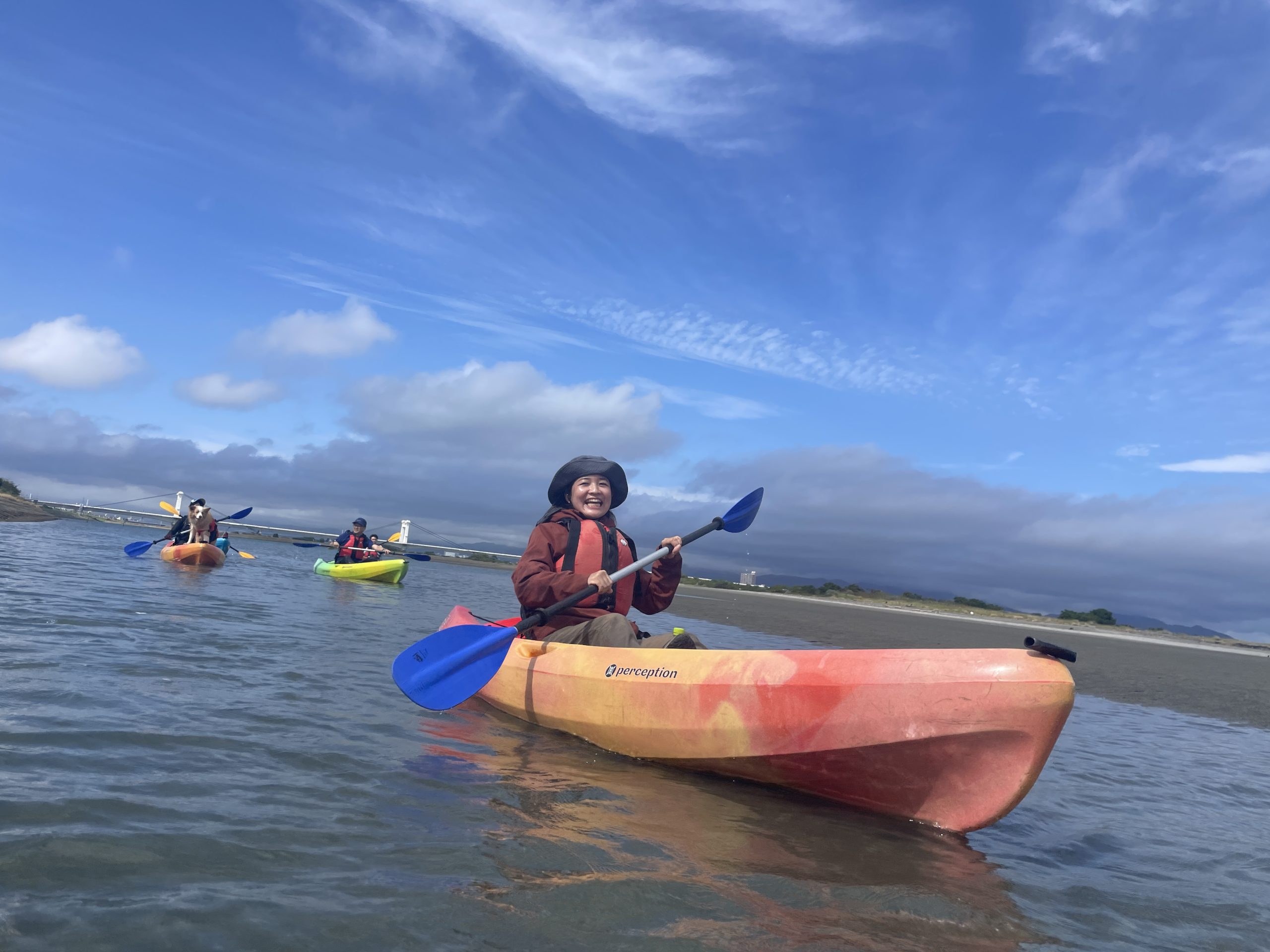 休憩後、漕ぎ降ると空気や風が違ってきました。いよいよ河口付近。海の香りがしてきます。