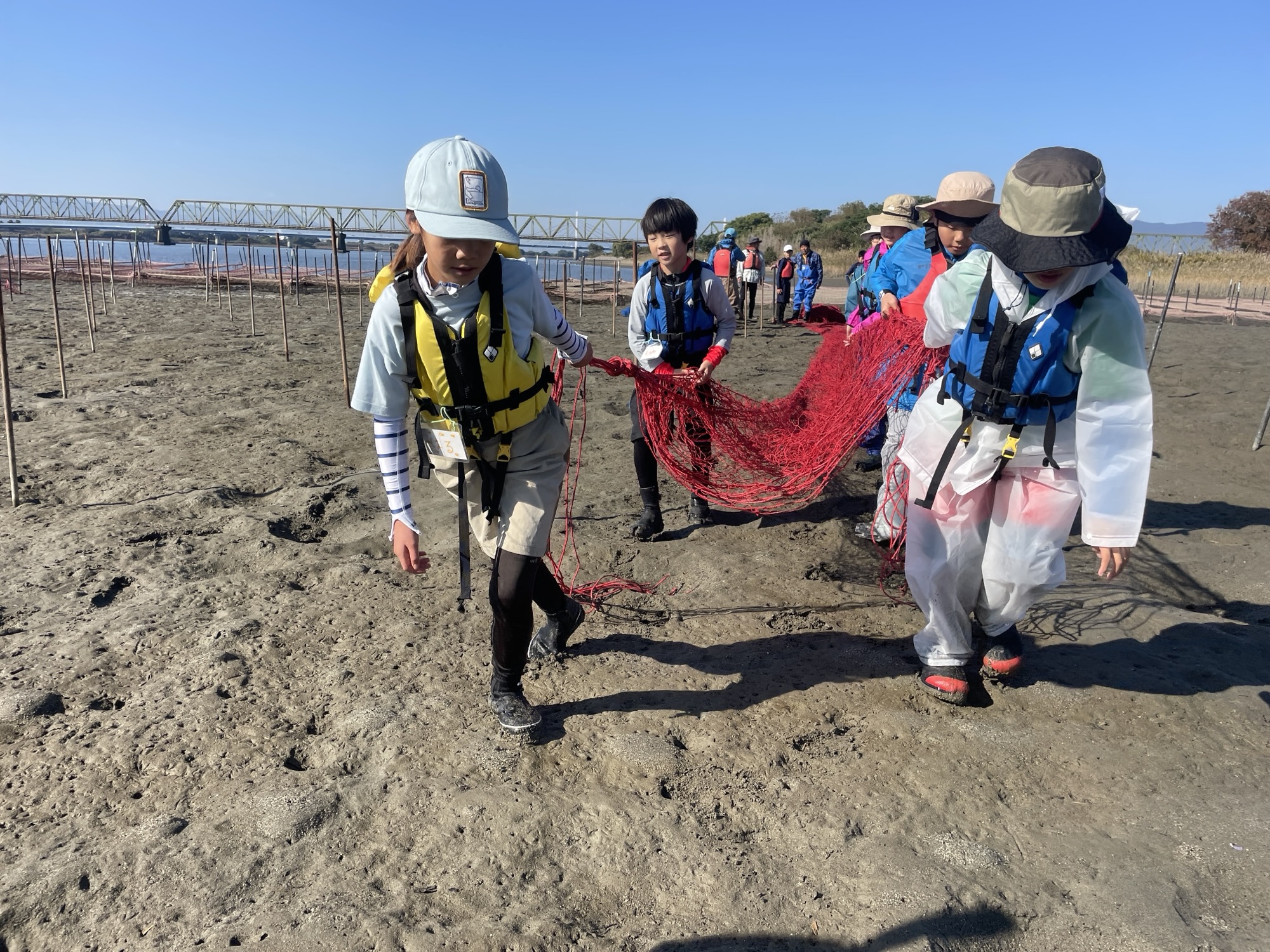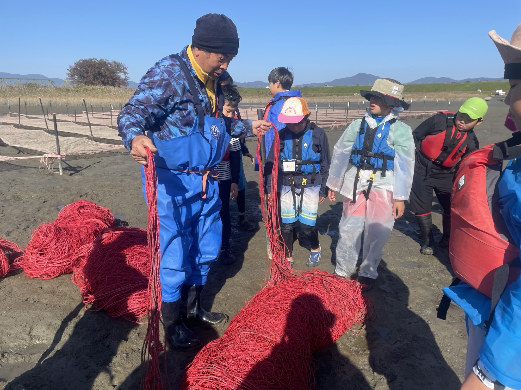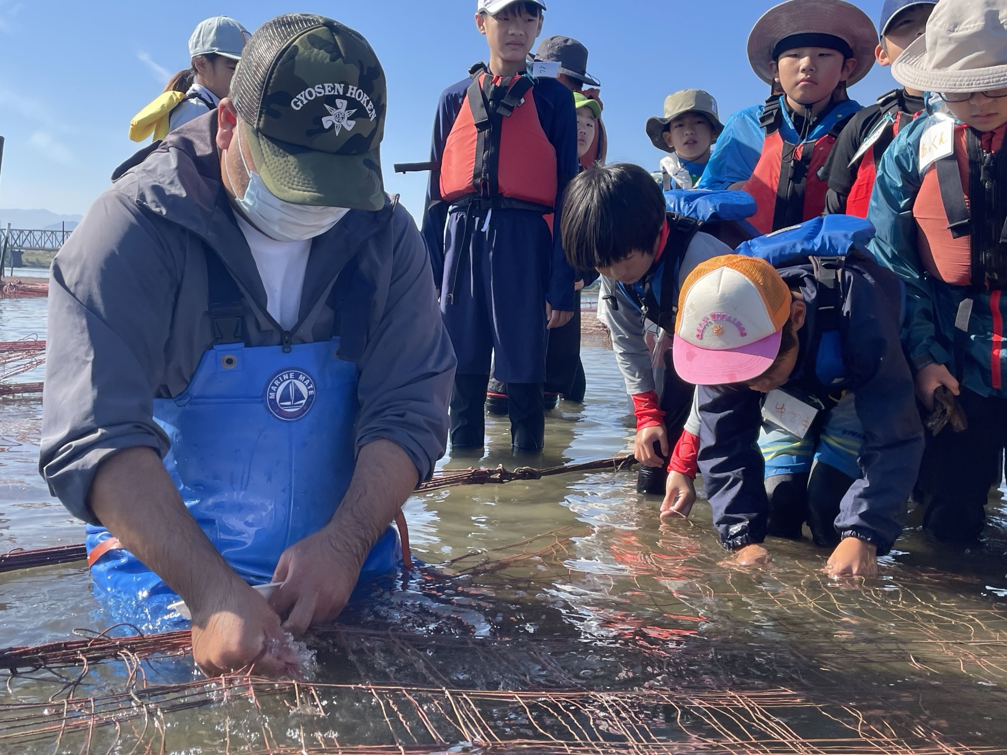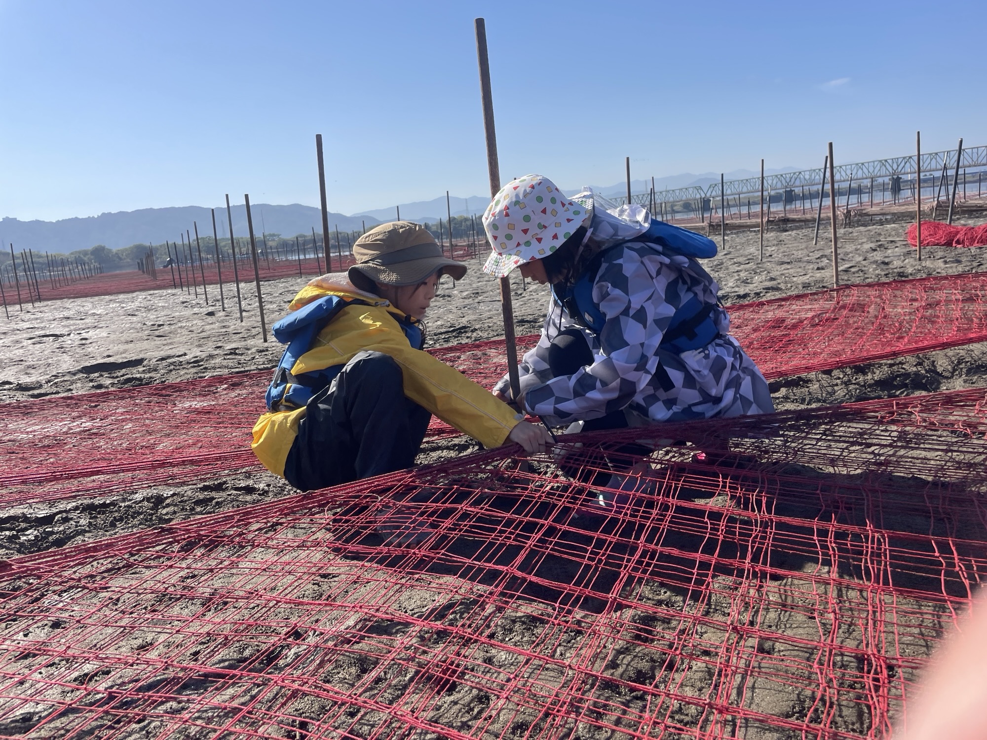 11月16日、まだまだ暖かい秋空の中、すじ青のりの網張り体験をしました!