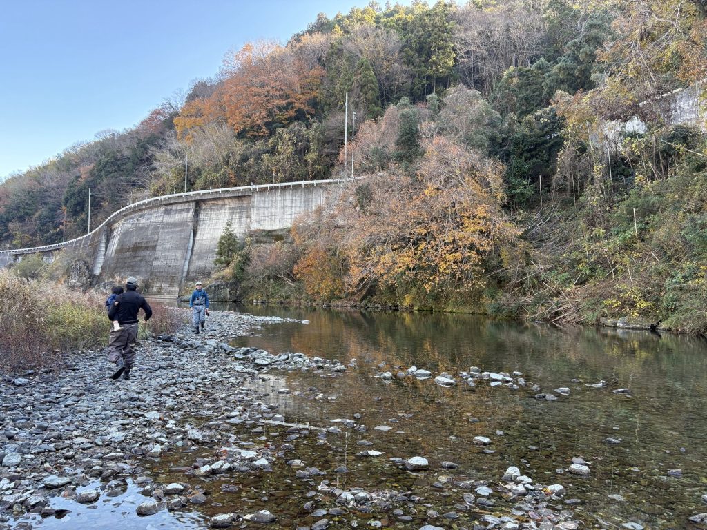 まずは、第1回のwsで作ったバーブ工(河原から飛び出すように作った石組み)の確認。所々壊れていたけど、しっかり落ち葉を溜めて、水生生物も確認できました。