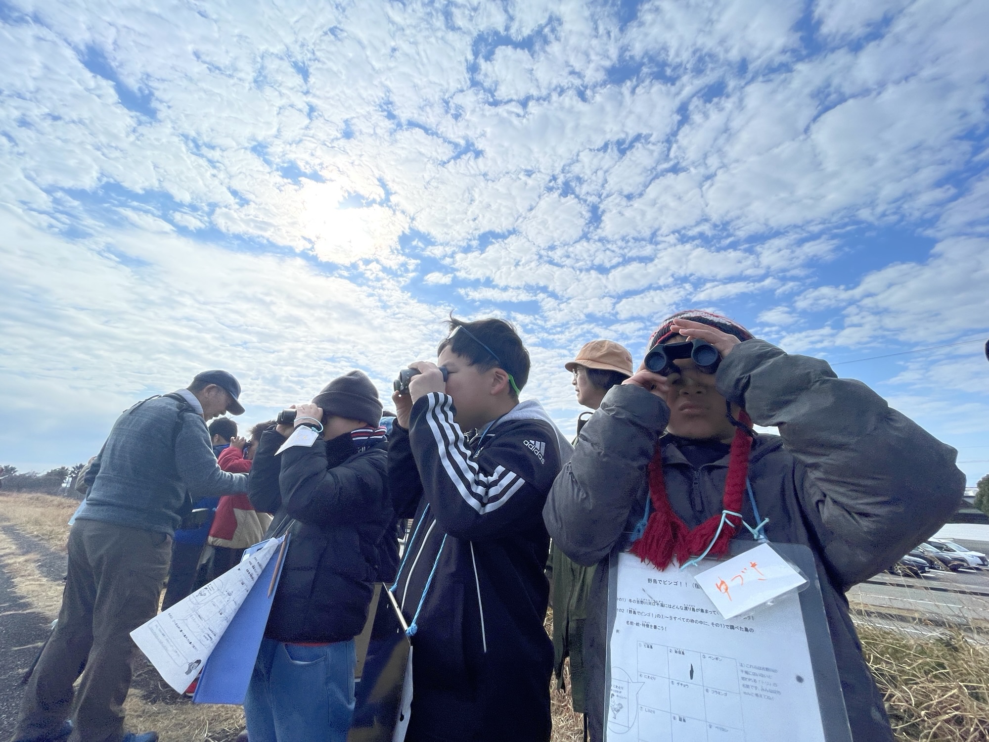 今月は野鳥の会の方々に来ていただき、野鳥の名前や特徴などを教えてもらいながらたっぷりと野鳥観察を満喫。